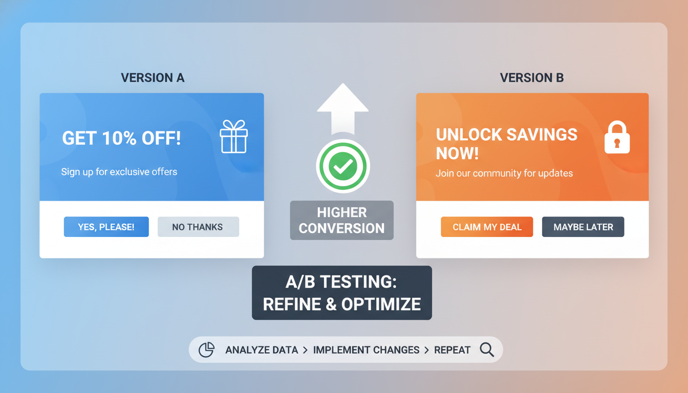 A/B testing is a critical step in ensuring that your first-time visitor popups not only capture attention but also drive conversions effectively. Through this process, you can refine elements of the popup to determine what works best for your audience.