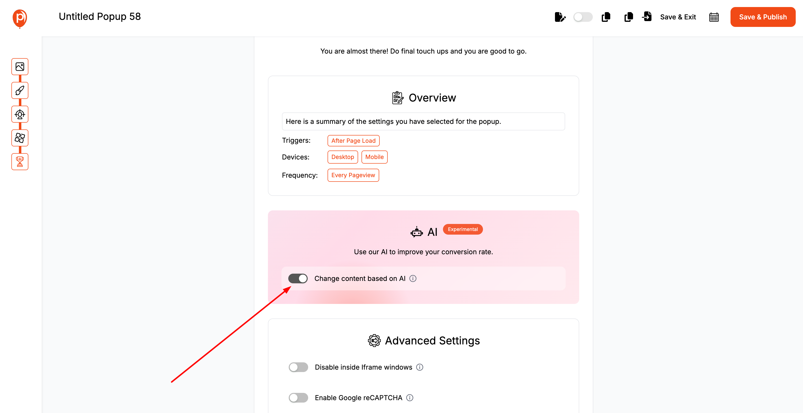 Leverage AI to personalize your popups further. AI can analyze user data and predict the most effective content to display, ensuring each user sees a message that resonates with their interests and behavior.