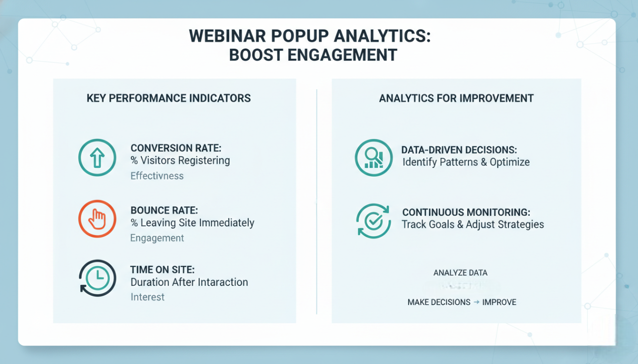Conversion Rate: This metric indicates the percentage of visitors who register for your webinar after viewing the popup. A high conversion rate suggests that your popup is effective in compelling visitors to take action.