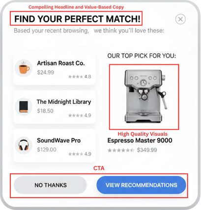 To make your popups both beautiful and effective, every element — from headline to call-to-action — needs to work together to guide the user naturally toward a decision.