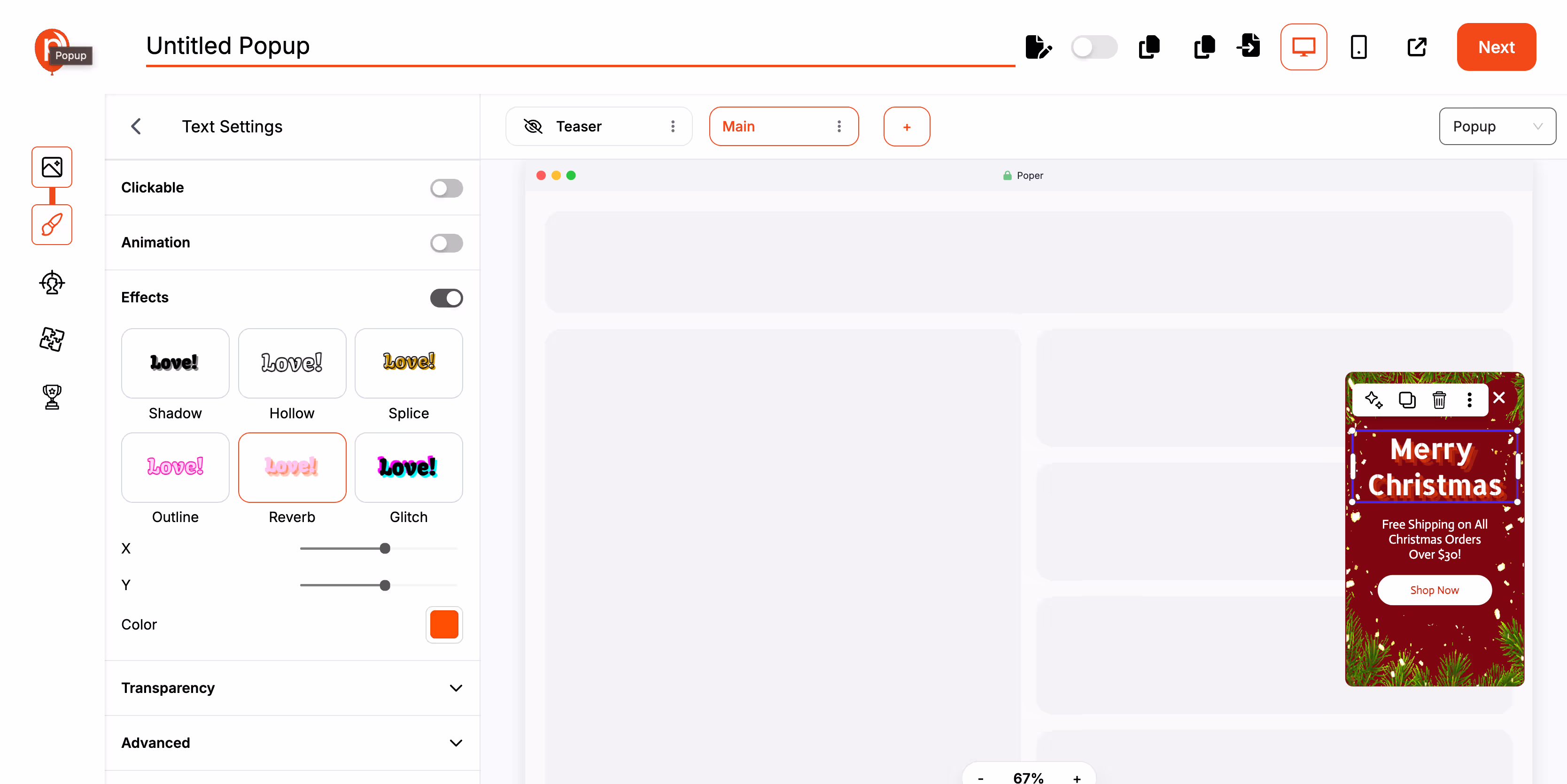 Drag-and-Drop Editor: Use Poper’s intuitive drag-and-drop editor to easily add and edit images, text, and other visual elements.