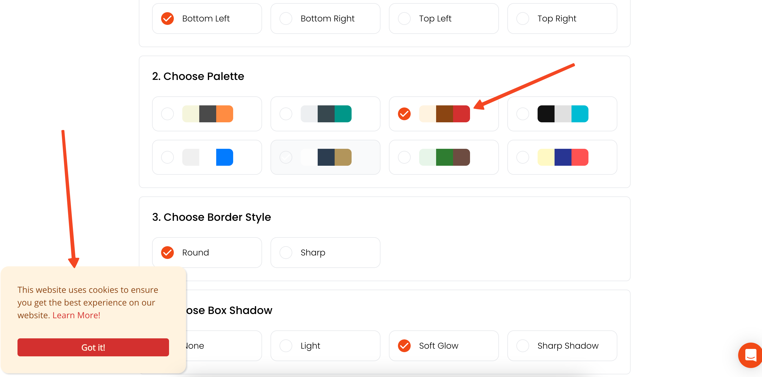 Next, let's make the notice look like it belongs on your website. You can pick a color that matches your brand’s design, which makes the experience feel seamless for your visitors. Building trust starts with brand consistency.